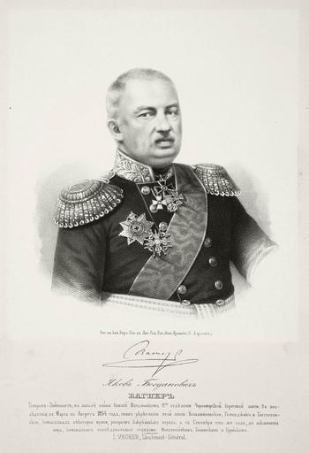 | Keywords: Wagner Jakob Bogdanovitch.jpg ru гене ал ru Вагне Яков Богданович 1858 По т еты лиц отличившихся заслугами и командовавших действующими частями в войне 1853-1856 годов СПб 1858-1861 author PD-Art Uploaded with UploadWizard Military people of the Crimean War Generals of the Russian Empire |