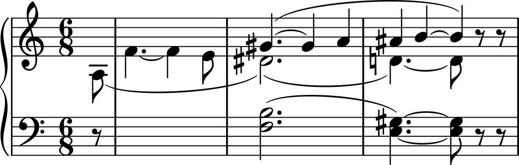 Keywords: Wagner Tristan opening.svg s2 gis4 ~ gis4 a8 ais8 b4~ b8 \oneVoice r r B \relative c' \voiceTwo a8 f'4 ~ f4 e8 dis2 d 4 ~ d8 s s C \relative c \clef bass r8 R1 6/8 <f b>2 <e gis>4 ~ <e gis>8 r r \score \new PianoStaff << \new Staff << \new Voice \A \new Voice \B >> \new Staff \C >> \layout indent 0 0\mm ragged-right t </pre> 2015-12-09 File Wagner Tristan opening png Music Richard Wagner <br> Original PNG image wikipedia User Camembert other versions Custom license marker 2015 12 09 Uploaded with UploadWizard Sheet music of Richard Wagner Tristan chords |