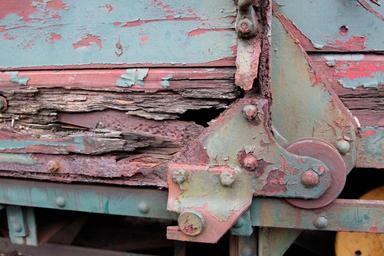Keywords: wagon train railway old rusted wreck railway carriages obsolete turned off retired stainless screw hinge metal rots