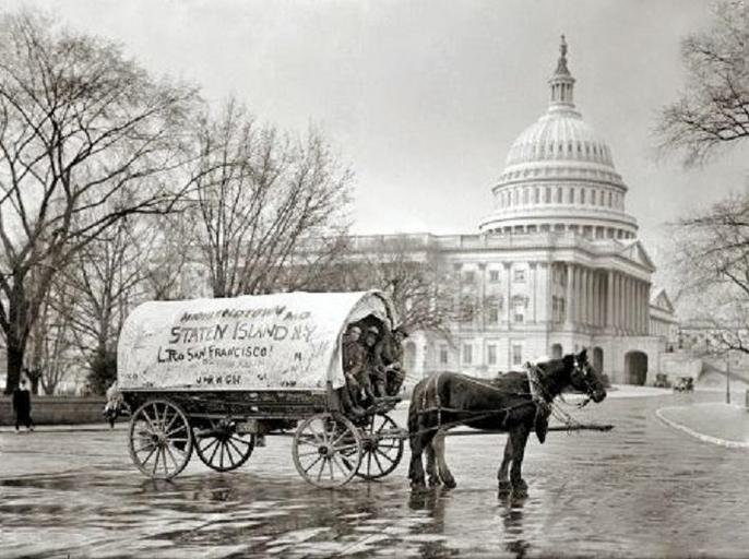 | Keywords: Wagon and the US Capitol.jpg en Three men sitting in a wagon while on their way from Staten Island New York to San Francisco California via the Overland Trail The east side of the United States Capitol is in the background hec 05550 Harris Ewing 1915 PD-USGov Washington D C in the 1910s Exterior of the United States Capitol Horse-drawn covered wagons People of New York City |