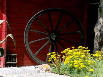 Keywords: wagon wheel farmhouse wheel wood garden deco