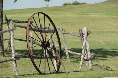 Keywords: wagon wheel wood fence outdoors rustic country