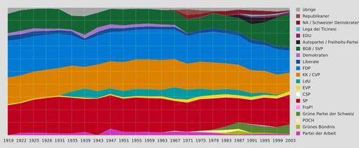 Keywords: Wähleranteil Nationalrat Schweiz.svg Wähleranteil der Parteien im Schweizer Nationalrat 1919-2003 Own 2 4 2007 David Herzog User Numerus Klausus Elections in Switzerland Swiss National Council Demographics of Switzerland