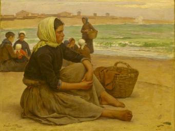 | Keywords: Waiting for the boats (1892) - Marques de Oliveira (1853-1927) (16215690116).jpg Museu Nacional de Arte Contemporânea MNAC Lisbon Portugal Oil on canvas JOÃO MARQUES DA SILVA OLIVEIRA nasceu no Porto a 23 de Agosto de 1853 Iniciou a sua aprendizagem artÃstica com o pintor António José da Costa antes de se matricular na Academia Portuense de Belas-Artes escola que frequentou entre 1864 e 1873 foram seus mestres entre outros Tadeu de Almeida Furtado e João António Correia Em 1873 concorreu à bolsa do Estado para pensionista no estrangeiro na classe de Pintura de História a par de Silva Porto que se candidatou na categoria de Paisagem Em Paris matriculou-se na Escola Nacional de Belas Artes onde teve como professores Cabanel e Yvon Nesta cidade teve a oportunidade de contactar com novas tendências estéticas nomeadamente com os artistas com ligações à escola de Barbizon Em 1876 após uma visita de estudo à Bélgica Holanda e Inglaterra partiu para Itália onde iria permanecer até meados de 1878 ano em que retorna a Paris Regressado definitivamente a Portugal em 1879 foi nomeado Académico da Academia Portuense; em 1881 substituiu Tadeu Furtado na cadeira de Desenho Histórico e em 1895 foi transferido para a de Pintura Histórica em substituição de João António Correia A sua actividade docente que se prolongou até 1926 foi marcante pela iniciação dos alunos à nova estética do naturalismo Promovia sessões de trabalho no exterior estimulando o exercÃcio da pintura no contacto directo com a natureza insistindo na qualidade do desenho como base de execução de qualquer obra Paralelamente à actividade de professor um pouco à semelhança do que acontecia em Lisboa em torno do Grupo do Leão em cuja génese se envolveu Silva Porto Marques de Oliveira participou activamente nos movimentos de renovação artÃstica no Porto ainda em 1880 participou na fundação do Centro ArtÃstico Portuense e do seu órgão A Arte Portuguesa e mais tarde na organização das Exposições de ™Arte que se realizaram no Ateneu Comercial do Porto No conjunto da vasta obra de pintura que realizou e que se encontra dispersa por instituições públicas e privadas e colecções particulares assumem particular significado as que dedicou aos grandes temas da Paisagem e do Retrato A sua actividade ficou ainda marcada pela pintura decorativa e religiosa feita a partir de encomenda e ainda à ilustração de livros e revista Ao longo de toda a sua carreira Marques de Oliveira participou em numerosas exposições nacionais e internacionais Em 1929 dois anos após a morte foi-lhe prestada homenagem no Porto com a inauguração de um monumento em sua honra no Jardim de S Lázaro e uma grande exposição da sua obra realizada no Ateneu Comercial do Porto https //www flickr com/photos/pedrosimoes7/16215690116/ Waiting for the boats 1892 - Marques de Oliveira 1853-1927 2015-01-04 16 51 https //www flickr com/people/46944516 N00 Pedro Ribeiro Simões from Lisboa Portugal 38 708796 -9 141858 source Flickr cc-by-2 0 pedrosimoes7 http //flickr com/photos/46944516 N00/16215690116 2015-04-10 07 50 13 cc-by-2 0 PD-old-auto-1923 1927 João Marques de Oliveira 1880s paintings from Portugal 1892 paintings Paintings in the Museu do Chiado People at the beach in art Naturalist paintings Beaches of Póvoa de Varzim People at the beach in Portugal Photos by Pedro Ribeiro Simões National costumes of Portugal Paintings of girls sitting on the ground outdoors |