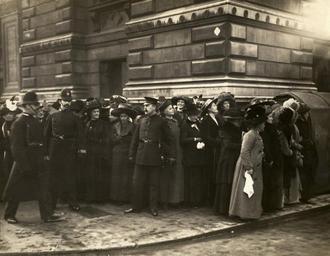 | Keywords: the women's library thewomenslibrary women suffrage politics hires monochrome 7JCC/O/02/054 Photograph, printed, paper, monochrome, a large group of women being controlled by police waiting outside Bow Street Magistrates' Court for women to be released; printed inscription on reverse 'Copyright. Newspaper Illustrations Limited. 161A Strand' 7JCC/O/02/054 Photograph, printed, paper, monochrome, a large group of women being controlled by police waiting outside Bow Street Magistrates' Court for women to be released; printed inscription on reverse 'Copyright. Newspaper Illustrations Limited. 161A Strand' |