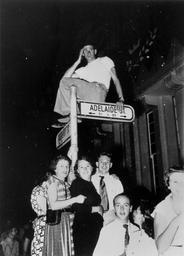 | Keywords: royal tour 1954 royaltour1954 queen elizabeth ii queenelizabethii queen elizabeth royal jubilee state library of queensland statelibraryofqueensland slq queensland blackandwhite people monochrome black and white Creator: Unidentified Location: Brisbane, Queensland Description: Waiting to see Queen Elizabeth and The Duke of Edinburgh on their visit to Brisbane in March 1954. A young man is perched on top of the street sign, at the corner of Adelaide and Albert Streets, Brisbane. He is waiting, with the crowd below him, to see Queen Elizabeth II and the Duke of Edinburgh. Information about State Library of Queensland’s collection: pictureqld.slq.qld.gov.au/ Creator: Unidentified Location: Brisbane, Queensland Description: Waiting to see Queen Elizabeth and The Duke of Edinburgh on their visit to Brisbane in March 1954. A young man is perched on top of the street sign, at the corner of Adelaide and Albert Streets, Brisbane. He is waiting, with the crowd below him, to see Queen Elizabeth II and the Duke of Edinburgh. Information about State Library of Queensland’s collection: pictureqld.slq.qld.gov.au/ |