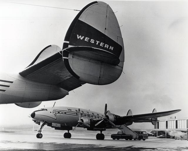 | Keywords: western airlines westernairlines lockheed constellation lockheedconstellation constellation lockheed aircraft vehicle outdoor blackandwhite airplane black and white Western Airlines "The Only Way to Fly" Lockheed Constellation. The back of this photo says it was taken In 1955. I know that Western acquired some Constellations when they merged with Pacific Northern Airlines (PNA) in 1967. I don't think Western operated their own Constellations prior to that. I will have to do some research on this. There is a Boring jet peaking out around the corner of the terminal and the ramp is snow covered. Also the vehicles on the ramp look newer than the 1950s. This causes me to believe that this was a Constellation acquired from PNA in the 60s. The ramp at Anchorage Alaska would be my guess. I flew with some PNA guys at Western. They told me some pretty wild stories about operating the Constellation into places like Kodiak Alaska. NOT my photo. Western Airlines "The Only Way to Fly" Lockheed Constellation. The back of this photo says it was taken In 1955. I know that Western acquired some Constellations when they merged with Pacific Northern Airlines (PNA) in 1967. I don't think Western operated their own Constellations prior to that. I will have to do some research on this. There is a Boring jet peaking out around the corner of the terminal and the ramp is snow covered. Also the vehicles on the ramp look newer than the 1950s. This causes me to believe that this was a Constellation acquired from PNA in the 60s. The ramp at Anchorage Alaska would be my guess. I flew with some PNA guys at Western. They told me some pretty wild stories about operating the Constellation into places like Kodiak Alaska. NOT my photo. |