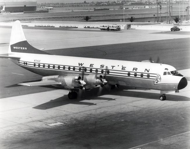 | Keywords: western airlines westernairlines lockheed electra lockheedelectra klax lockheed electra vintage aviation photo 1959 aircraft airplane vehicle blackandwhite outdoor black and white Western Airlines "The Only Way to Fly" Lockheed Electra in 1959. Great vintage airline paint scheme ! This is from a group of images that I obtained from the Western Airlines company store in the 1970s. They have been sitting in my file drawer for decades. I believe this photo was taken at KLAX. Probably in front of the Western Airlines hanger at LAX. NOT my photo Western Airlines "The Only Way to Fly" Lockheed Electra in 1959. Great vintage airline paint scheme ! This is from a group of images that I obtained from the Western Airlines company store in the 1970s. They have been sitting in my file drawer for decades. I believe this photo was taken at KLAX. Probably in front of the Western Airlines hanger at LAX. NOT my photo |