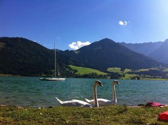 Keywords: walchsee lake austria landscape sky nature mountains swan holiday sailing boat alpine water outlook tyrol blue animal
