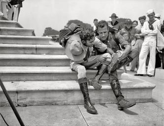 | Keywords: Walk 800 miles.jpg Walk 800 miles to attend Boy Scout Jamboree Two Venezuelan Boy Scouts Rafael Angel Petit left and Juan Carmona examining their boots after tramping 25 miles a day for two years in order to attend the Boy Scout Jamboree in Washington They left Caracas Jan 11 1935 arriving in Washington today Harris Ewing Collection glass negative 1937-06-16 http //www shorpy com/node/6133 size _original caption author PD-VE-Photo 1937 in Venezuela Caracas in the 1930s Caracas in black white Municipio Libertador Files by The Photographer |