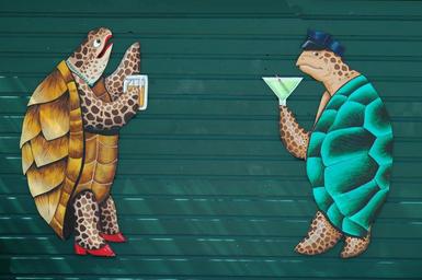 Keywords: wall mural graphic art turtle reptile colorful animation art background backdrop building exterior mural architecture ornament painting