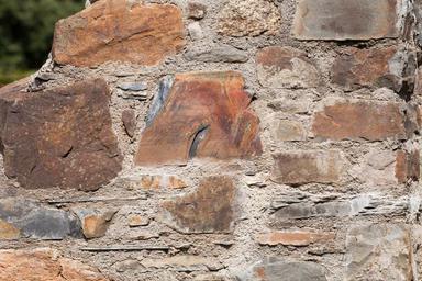 Keywords: wall natural stone sand stone old hard whitish red rusty bricked fund background