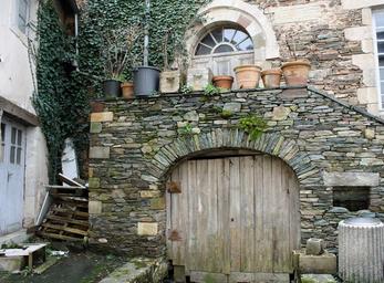 Keywords: wall stone door wooden old medieval arches pots house backyard