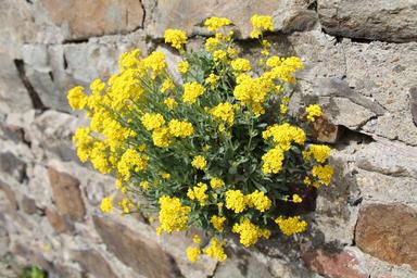 Keywords: wallflower wall flower wall plant blossom bloom wall flower cracks city wall old plant frugality green yellow red cracked