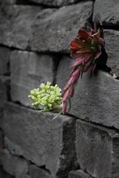 Keywords: wallflower wall stones cracks flowers houseleek plant