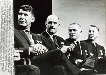 | Keywords: wally schirra wallyschirra gemini nasa gemini 6 gemini6 groupshot people indoor From an album detailing the Gemini 6 Mission. Repository: San Diego Air and Space Museum Archive Photo from an album on the Gemini 6 Mission. Repository: San Diego Air and Space Museum Archive From an album detailing the Gemini 6 Mission. Repository: San Diego Air and Space Museum Archive Photo from an album on the Gemini 6 Mission. Repository: San Diego Air and Space Museum Archive | ||||