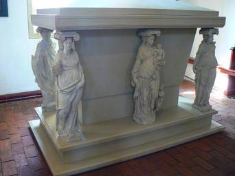 Keywords: Walpurgis-Sarkophag 06.JPG en Walpurgis-Sarkophag wood 1997 with Sandstein-Karyatiden 1586 in St Magnus Kirche in Esens/Germany own Gerardus 2009-04-16 St Magnus Esens