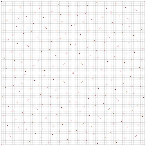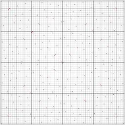 | Keywords: Walsh permutation 1 3 5 15 17 51 85 255.svg Permutation matrix of the Walsh permutation wp A001317 0 7 wp 1 3 5 15 17 51 85 255 <br> The permutation is row 3 of the triangle A197819 It is self-inverse so the matrix is symmetric The odd entries on the odd places are the complements of the even entries on their left <br> The subsequence of even entries divided by 2 gives wp A001317 1 7 -1 /2 wp 1 2 7 8 25 42 127 396px The permutation is self-inverse so the matrix is symmetric Above that the matrix is also symmetric to the antidiagonal own mate2code Permutation matrices of Walsh permutations Binary square matrix; 256x256 |