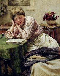 Keywords: Walter Langley - A Quiet Read.jpg accession number object history credit line oil on canvas photographical reproduction in the public domain PD-old-auto 1922 Walter Langley