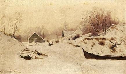 | Keywords: Walter Moras - Winter an einem See im Baltikum.jpg Artwork Creator Walter Moras de Winter an einem See im Baltikum 1869 oil canvas board cm 30 5 50 5 object history credit line Unten links Tuffainen 11/2 69 W Moras accession number http //www van-ham com/datenbank-archiv/datenbank/walter-moras/winter-an-einem-see-im-baltikum-1 html van-ham com PD-old-auto 1925 Walter Moras Neringa in art 1869 paintings 1860s landscape paintings Images from Van Ham Kunstauktionen Paintings of winter Winter in Lithuania |