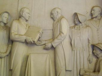 | Keywords: Wandafbeelding.jpg 'n Paneel van die historiese fries in die Heldesaal van die Voortrekkermonument Pretoria In hierdie paneel een van 27 word 'n bybel wat tans in die Senotaafsaal gehuisves word deur vrederegter Thomas Phillipshttp //archiver rootsweb ancestry com/th/read/SOUTH-AFRICA/2003-11/1068913410 namens die Britse setlaars van Grahamstad aan trekker J J Uys<ref name Uys> Cite journal Uys Ian S A Boer family Military History Journal 3 6 http //samilitaryhistory org/vol036iu html 1976-12 </ref> oorhandig Die panele in Quercetta-marmer<ref name beeld> cite journal Rademeyer Alet ˜Klipouma ™ kon jas skoene koop http //www beeld com/Suid-Afrika/Nuus/Klipouma-kon-jas-skoene-koop-20121025 26 Oktober 2012 Beeld 2012-10-25 22 48 </ref> beeld tonele uit vanaf die uittog uit die oos-Kolonie in 1835 tot die ondertekening van die Sandrivierkonvensie in 1852 A panel of the historical frieze in the Hall of Heroes of the Voortrekker Monument Pretoria In this panel one of 27 a bible which is currently in the Cenotaph Hall exhibit is presented by Thomas Phillips left on behalf of the British settlers of Grahamstown to voortrekker J J Uys right <ref name Uys/> The panels in Quercetta marble<ref name beeld/> portray scenes from the Trekker departure from the Colony's frontier in 1835 to the signing of the Sand River Convention in 1852 reflist own work 2006-01-14 Eduard van Velde Related panel “ deaths of J J Uys's son and grandson<br> 70px Voortrekker Monument 1820 Settlers |
