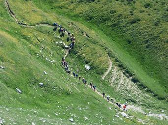Keywords: wanderer caravan mountains human snake in a row path hike transport maritime alps alpine gta grande traversata delle alpi long distance trail long distance footpath passo delle saline saline