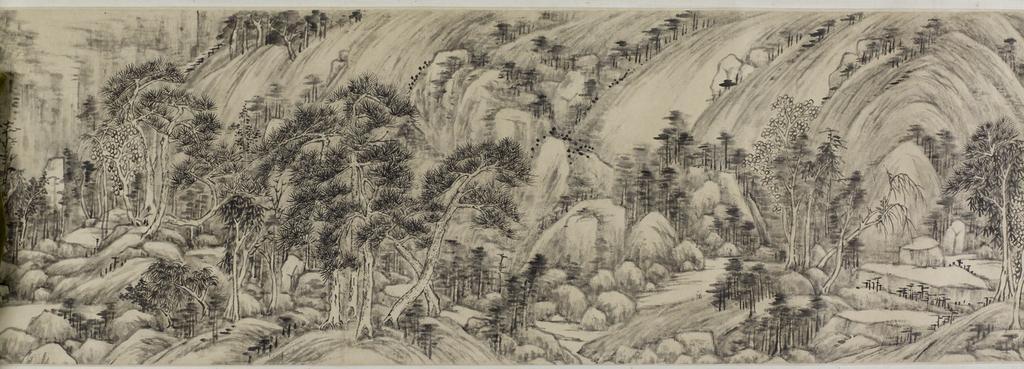 | Keywords: Wang Yuanqi -Wang Yuan-ch'i- - Free Spirits Among Streams and Mountains - Walters 35198 - View D.jpg When he painted this long handscroll in 1684 Wang Yuanqi Wang Yüan-ch'i the greatest orthodox master of the Qing Ch'ing dynasty had not yet developed the style for which he is best remembered Grounded in the lessons of his grandfather the artist Wang Shimin Wang Shih-min he aimed in his own way to make a work both as weighty and as free as that which was regarded as the greatest of Chinese handscrolls Huang Gongwang's Huang Kung-wang's Dwelling in the Fuchun Fu-ch'un Mountains of 1350 1684 ink paper H 13 x L 279 7/8 in 33 x 710 9 cm accession number 35 198 3491 James Freeman date and mode of acquisition unknown Walters Art Museum 1994 by purchase Museum purchase with funds provided by the W Alton Jones Foundation Acquisition Fund 1994 Free Spirits among Streams and Mountains A Chinese Handscroll by Wang Yuan-ch'i 1645-1715 The Walters Art Gallery Baltimore 1996 place of origin China Walters Art Museum license 2D Free Spirits Among Streams and Mountains Wang Yuanqi |