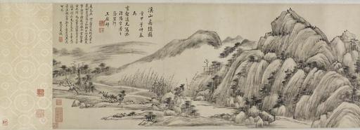 | Keywords: Wang Yuanqi -Wang Yuan-ch'i- - Free Spirits Among Streams and Mountains - Walters 35198 - View J.jpg When he painted this long handscroll in 1684 Wang Yuanqi Wang Yüan-ch'i the greatest orthodox master of the Qing Ch'ing dynasty had not yet developed the style for which he is best remembered Grounded in the lessons of his grandfather the artist Wang Shimin Wang Shih-min he aimed in his own way to make a work both as weighty and as free as that which was regarded as the greatest of Chinese handscrolls Huang Gongwang's Huang Kung-wang's Dwelling in the Fuchun Fu-ch'un Mountains of 1350 1684 ink paper H 13 x L 279 7/8 in 33 x 710 9 cm accession number 35 198 3491 James Freeman date and mode of acquisition unknown Walters Art Museum 1994 by purchase Museum purchase with funds provided by the W Alton Jones Foundation Acquisition Fund 1994 Free Spirits among Streams and Mountains A Chinese Handscroll by Wang Yuan-ch'i 1645-1715 The Walters Art Gallery Baltimore 1996 place of origin China Walters Art Museum license 2D Free Spirits Among Streams and Mountains Wang Yuanqi |