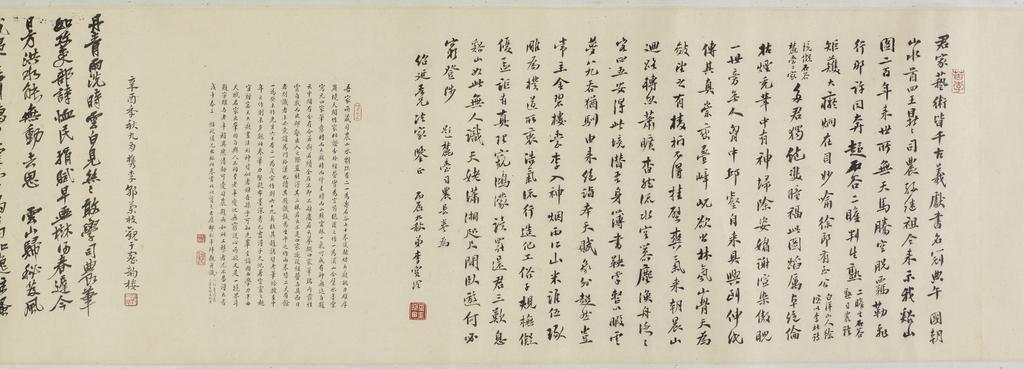 | Keywords: Wang Yuanqi -Wang Yuan-ch'i- - Free Spirits Among Streams and Mountains - Walters 35198 - View M.jpg When he painted this long handscroll in 1684 Wang Yuanqi Wang Yüan-ch'i the greatest orthodox master of the Qing Ch'ing dynasty had not yet developed the style for which he is best remembered Grounded in the lessons of his grandfather the artist Wang Shimin Wang Shih-min he aimed in his own way to make a work both as weighty and as free as that which was regarded as the greatest of Chinese handscrolls Huang Gongwang's Huang Kung-wang's Dwelling in the Fuchun Fu-ch'un Mountains of 1350 1684 ink paper H 13 x L 279 7/8 in 33 x 710 9 cm accession number 35 198 3491 James Freeman date and mode of acquisition unknown Walters Art Museum 1994 by purchase Museum purchase with funds provided by the W Alton Jones Foundation Acquisition Fund 1994 Free Spirits among Streams and Mountains A Chinese Handscroll by Wang Yuan-ch'i 1645-1715 The Walters Art Gallery Baltimore 1996 place of origin China Walters Art Museum license 2D Free Spirits Among Streams and Mountains Wang Yuanqi |