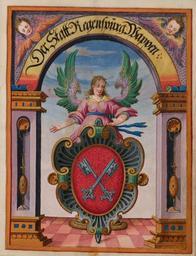 | Keywords: Wappenbuch Ungeldamt Regensburg 000 vs019r.jpg Wappenbuch des Ungeldamtes Regensburg Stadtarchiv Ravensburg Stadtwappen http //gams uni-graz at/o rpb band12 after 1560 anonymous PD-old-100 Wappenbuch des Ungeldamtes Regensburg Coats of arms of Regensburg |