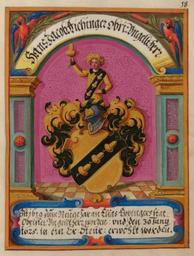| Keywords: Wappenbuch Ungeldamt Regensburg 018r.jpg Wappenbuch des Ungeldamtes Regensburg Stadtarchiv Ravensburg Wappen der Herren des Ungeldamtes Hans Jacob Aichinger http //gams uni-graz at/o rpb band12 after 1560 anonymous PD-old-100 Wappenbuch des Ungeldamtes Regensburg Coats of arms of Aichinger family |