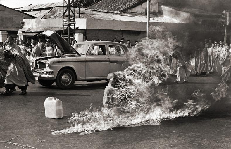 Keywords: Quang Duc, a Buddhist monk, burns himself to death on a Saigon street on June 11, 1963, to protest alleged persecution of Buddhists by the South Vietnamese government. (AP Photo/Malcolm Browne, File) saigon vnm