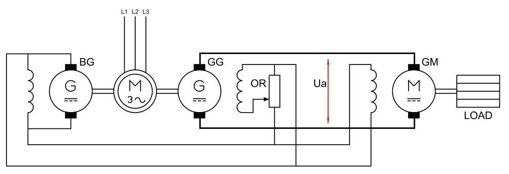 Keywords: WardLeonard-2.svg Electrical schematic of a Ward Leonard Control used for speed regulation of DC-motors Own 2007-12-22 PieterJanR SVG electric motors SVG electrical diagrams Ward-Leonard equipment