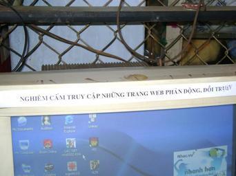 MAKE A MEME View Large Image Warning in Internet Cafe in Thu Duc, Vietnam-1.jpg A warning to customers at an Internet cafe in Thu Duc Ho Chi Minh City Vietnam The message taped along the top of the monitor warns against accessing depraved or reactionary materials ...