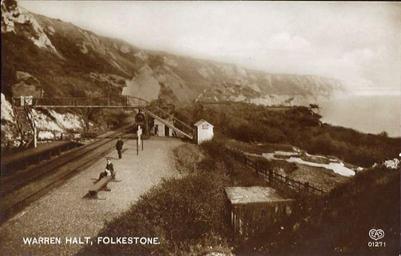 Folkestone Warren Halt, early 1900's, was a station on the South Eastern Main Line of the South Eastern Railway at the beach location known as "The Warren" in the east end of Folkestone, Kent.