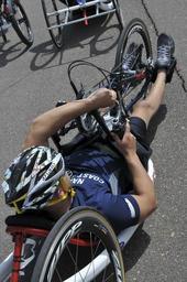 | Keywords: Warrior Games 2013 Cycling Practice 130506-N-DT940-009.jpg en Retired Master-at-Arms 3rd Class Nathan DeWalt of York Pa adjusts the gears on his bike at the Air Force Academy here in preparation for the 2013 Wounded Warrior Games The Warrior Games includes competitions in archery cycling seated volleyball shooting swimming track and field and wheelchair basketball The goal of the Warrior Games is not necessarily to identify the most skilled athletes but rather to demonstrate the incredible potential of wounded warriors through competitive sports More than 200 wounded ill or injured service members from the U S and U K armed forces are scheduled to compete in the Paralympics-style competition May 11-16 U S Navy photo by Mass Communication Specialist 1st Class Erica R Gardner/Released 2013-05-06 Petty Officer 1st Class Erica R Gardner https //www dvidshub net/image/929523 130506-N-DT940-009 2013-05-11 19 13 COLORADO SPRINGS CO US PD-USGov-Military-Navy 2013 Warrior Games Images from DoD uploaded by Fæ |