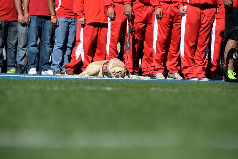 Keywords: Warrior Games athletes honored at Navy-Air Force football game 141004-D-DB155-028.jpg en A service dog rests during the closing ceremony for the 2014 Warrior Games at the Air Force Academy football field Colorado Springs Colo Oct 4 2014 DoD News photo by EJ Hersom 2014-10-04 EJ Hersom https //www dvidshub net/image/1598072 141004-D-DB155-028 2014-10-04 22 27 COLORADO SPRINGS CO US PD-USGov 2014 Warrior Games Images from DoD uploaded by Fæ |