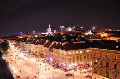 Keywords: warsaw the old town evening street light poland