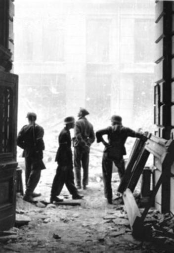 | Keywords: Warsaw Uprising by Lokajski - 3633.jpg  Warsaw Uprising group of insurgents in the entrance to townhouse at ulicy Moniuszki 11 street Powstanie warszawskie Grupa powstańców w bramie przy ulicy Moniuszki 11 na tle zbombardowanej kamienicy na Moniuszki 12 1957-08-01 72 Wydanie Specjalne Warszawskiego Tygodnika Ilustrowanego Stolica Warszawa http //www szczep413 pl/galerie/powstanie/images/image_152 jpg php other date mid 1944-09 Creator Eugeniusz Lokajski 52 234246 21 009668 PD-Polish PD-old-auto 1944 Images from Powstanie Warszawskie w Ilustracji 072 Photographs by Eugeniusz Lokajski Warsaw Uprising photos from September 10-19 Warsaw Uprising photos from Moniuszki Street |