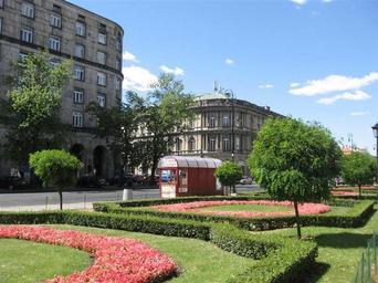 Keywords: Warszawacz6.jpg Warsaw in Poland 2006-07-16 own assumed DocentX Skwer ks Jana Twardowskiego Europejski Hotel in Warsaw Bus stops in Warsaw Bus shelters in Poland