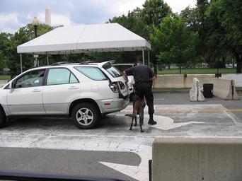Keywords: Washington DC Security Search.JPG 2005-06-21 own assumed Indolences PD US DHS United States Park Police Detection dogs Dogs sniffing Lexus RX 300 MCU10/MCU15 Dogs and automobiles