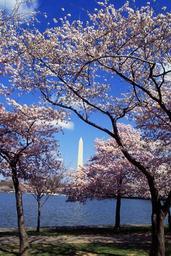 Keywords: washington monument cherry trees blossoms water reflection pool spring washington dc flower blooming tourism usa