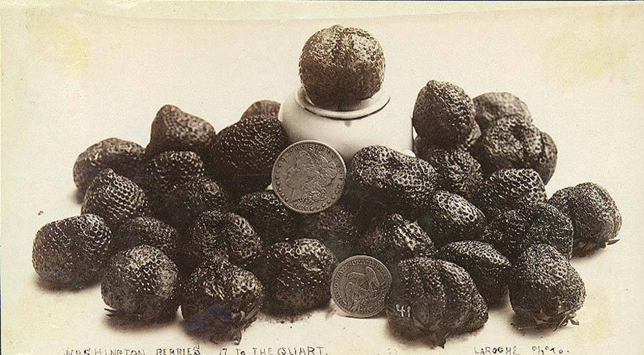 | Keywords: Washington strawberries, ca 1891 (LAROCHE 95).jpeg Photograph Creator Frank La Roche Caption on image Washington berries 17 to the quart Photographed with coins to show size of strawberries Subjects LCTGM Strawberries--Washington State ; Coins--United States--Washington State Subjects LCSH Strawberries in art depicted place Washington state ca 1891 Institution University of Washington UWASH-LAROCHE-source accession number laroche 95 PD-old-auto-1923 1936 Information field Order Number LAR001 Strawberries Coins of the United States Washington state in the 1890s Black and white photographs |