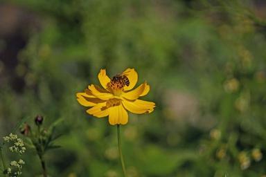 Keywords: wasp bee blossom bloom close insect collect nectar flower yellow