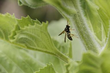 Keywords: wasp sunflower insect garden plant green leaf outdoor wildlife