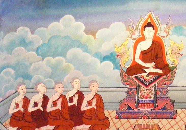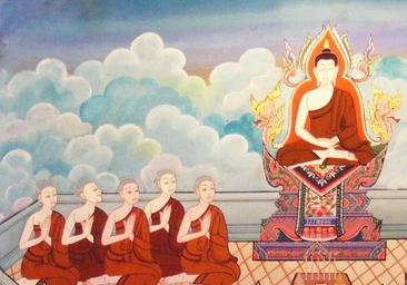 Keywords: Wat Phra Yuen Phutthabat Yukhon 5.jpg ภาพจิตรกรรม า นังพระพุทธประวัติ ภายในมณฑปพระพุทธบาท วัดพระยืนพุทธบาทยุคล<br>ถ่ายที่ วัดพระยืนพุทธบาทยุคล ตำบลทุ่งยั้ง อำ ภอลับแล จังหวัดอุตรดิตถ์ Wat Phra Yuen Phutthabat Yukhon<br>Location Wat Phra Yuen Phutthabat Yukhon Amphoe Laplae Uttaradit Province Thailand Selbst gefertigte Fotografie travail personnel Captured by uploader ภาพนี้ถ่ายโดย ู้อัพโหลด 由上傳 拍 2009 PD-art Sarnath Murals in Wat Phra Yuen Phutthabat Yukhon Paintings of Life of Gautama Buddha Asalha Puja in Thailand Pancavaggi |