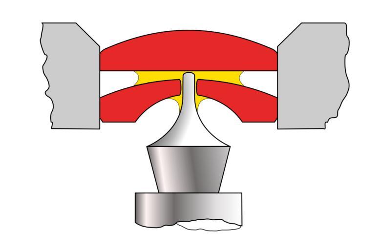 | Keywords: Watch jewel bearing and capstone.svg Drawing of a jewel bearing and capstone in a mechanical watch The bearing is sectioned through the axis The jewels red are made of synthetic ruby The lower jewel is called the 'hole jewel' the upper one is the 'capstone' or 'end jewel' This type of bearing is used in watches where friction is critical such as in the balance wheel pivots With ordinary bearings shown in Watch_jewel_bearing svg when the watch is vertical the shoulder of the shaft bears against the face of the hole jewel increasing friction This causes the watch's rate to vary with its position In contrast in this type the capstone provides a low friction surface for the rounded end of the pivot to press against instead reducing friction The hole for the pivot is slightly convex hourglass shaped so that if the pivot is not exactly vertical it won't jam in the hole The surface of the lower jewel 'bombé' is also slightly convex holding a drop of oil yellow between the jewels in contact with the pivot by capillary attraction The jewels are press-fitted into holes in the movement's supporting plates grey Information for this drawing came from Henry B Fried 1954 Bench Practices for Watch and Clockmaker Arlington Book Co Virginia USA Book 3 Ch 1 p 140-188 Own 2008-07-13 Chris Burks Chetvorno I the author release this drawing into the public domain for any use whatever Clockworks Watchworks Cross sections of bearings Balance wheels Ruby SVG machinery |