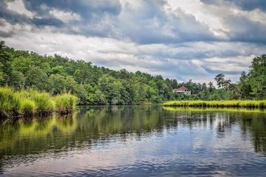 Keywords: water clouds marsh reflection tranquil sky blue natural