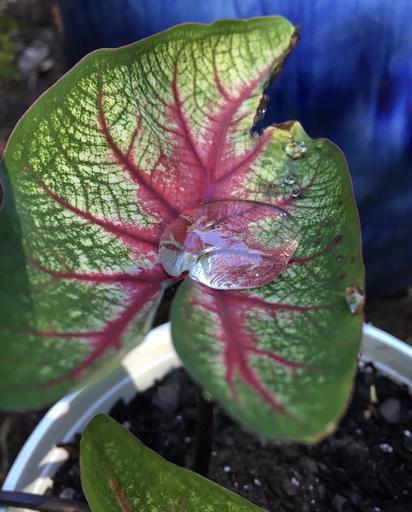 Keywords: water droplet droplet caladium dew rain bubble water blue plant garden drop elephant ear