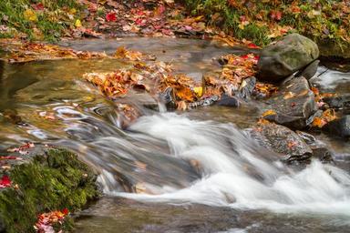 Keywords: water flowing leaves fall